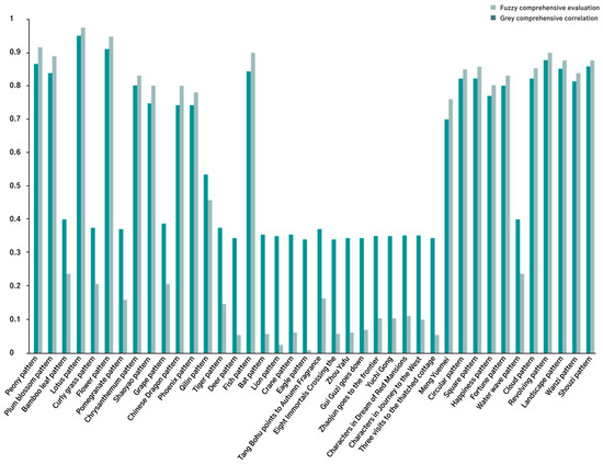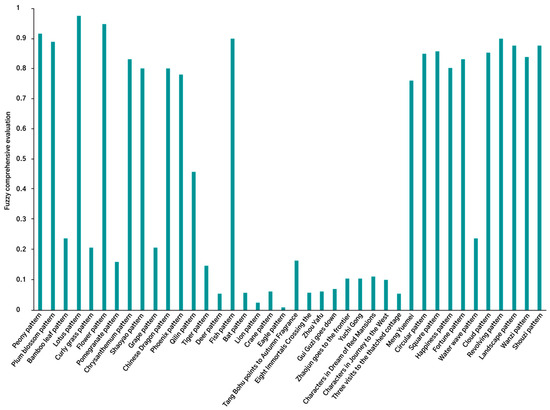 Secondly, the Fuzzy Evaluation Method excels in addressing strongly subjective assessment dimensions [59]. Evaluating blue-and-white porcelain patterns across dimensions such as cultural symbolism, esthetic value, communicative power, modern applicability, and sustainability inevitably involves subjective judgments. Traditional quantitative tools often fail to effectively integrate subjective opinions from experts and the public. However, the fuzzy evaluation method constructs a multidimensional scoring system based on fuzzy mathematics, converting subjective evaluations into quantifiable data and yielding more representative and practical outcomes. This method is particularly suitable for the complex design characteristics and rich cultural symbolism inherent in porcelain patterns.