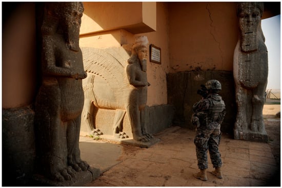 In November 2008, in the ancient city of Kalhu (Nimrud), a reporter of the U.S. Air Force takes pictures of one of the lamassu statues in Ashurnasirpal II’s Northwest Palace (Figure 4).