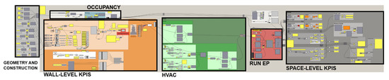 Once the geometric modeling of the BEM was completed, we proceeded to the energy modeling phase using HoneyBee and LadyBug [23], environmental analysis tools available in GH that enable detailed dynamic simulations of the building’s energy behavior using the EnergyPlus engine. As shown in Figure 7, this task was subdivided into several sub-steps.