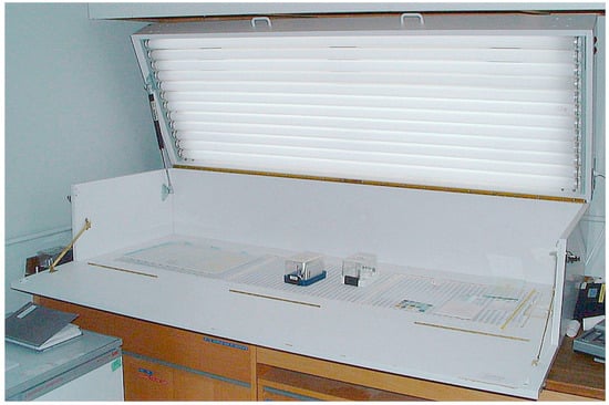 - Saunders, D.; Kirby, J. A Comparison of Light-induced Damage under Common Museum Illuminants. In ICOM Committee for Conservation 15th Triennial Meeting, New Delhi, India, 22–26 September 2008; Bridgland, J., Ed.; ICOM: Paris, France, 2008; Volume 2, pp. 766–774. Available online: www.icom-cc-publications-online.org/1935/A-comparison-of-light-induced-damage-under-common-museum-illuminants (accessed on 30 October 2024).