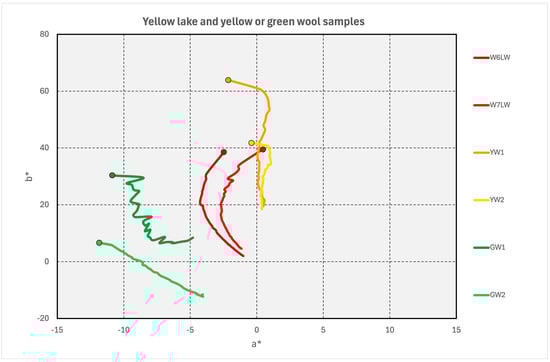 3.3. Yellow Pigments, Yellow Wools, and Green Wools