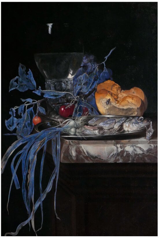 - Saunders, D.; Kirby, J. Light-induced Colour Changes in Red and Yellow Lake Pigments. Nat. Gallery Tech. Bull. 1994, 15, 79–97. Available online: https://www.nationalgallery.org.uk/research/research-resources/technical-bulletin/technical-bulletin-volume-15 (accessed on 14 January 2025).