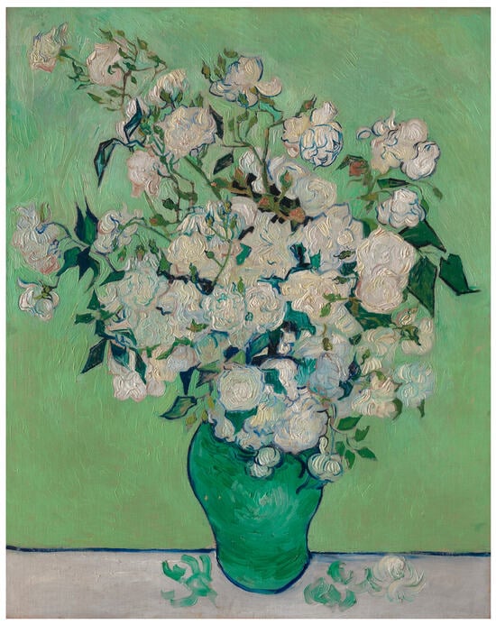 - Centeno, S.A.; Hale, C.; Carò, F.; Cesaratto, A.; Shibayama, N.; Delaney, J.; Dooley, K.; van der Snickt, G.; Janssens, K.; Stein, S.A. Van Gogh’s Irises and Roses: The Contribution of Chemical Analyses and Imaging to the Assessment of Color Changes in the Red Lake Pigments. Herit. Sci. 2017, 5, 18. [Google Scholar] [CrossRef]