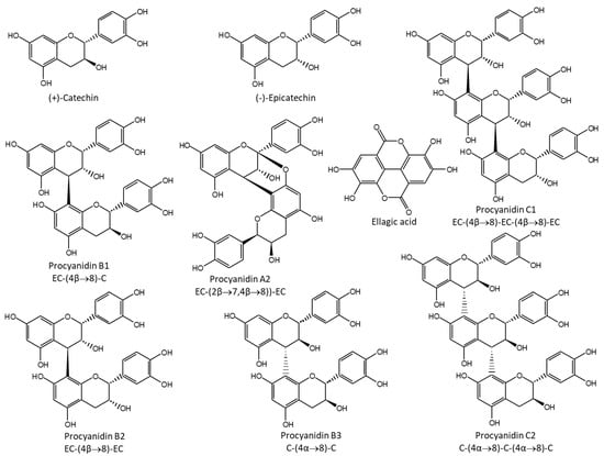 - Porter, L.J. Structure and Chemical Properties of the Condensed Tannins. In Plant Polyphenols; Springer: Boston, MA, USA, 1992; pp. 245–258. [Google Scholar] [CrossRef]