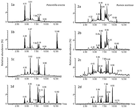 | Eluent | Fraction | Potentilla erecta | Rumex acetosa | ||