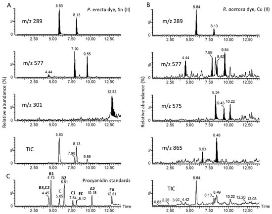 - Zhang, X.; Laursen, R.A. Development of Mild Extraction Methods for the Analysis of Natural Dyes in Textiles of Historical Interest Using LC-Diode Array Detector-MS. Anal. Chem. 2005, 77, 2022–2025. [Google Scholar] [CrossRef] [PubMed]