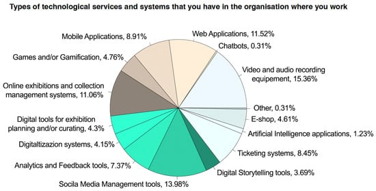 Heritage professionals were asked about the technological services and systems available in the organizations where they work (Figure 8).