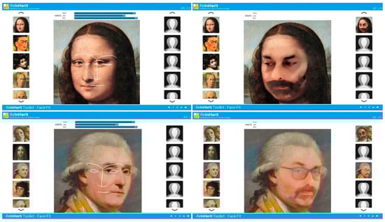 Face-Fit (see Figure 14) is an interactive software created with a combination of JavaScript and Python, designed to allow users to engage creatively with portrait paintings by customizing and animating artworks. Optimized for both smartphones and larger museum installations, and inspired by the ‘share-your-expression’ concept, the activity challenges participants to find the perfect match by aligning their facial orientation and expressions with those depicted in historical portraits. After successfully replicating the pose, users can blend their own facial image with the artwork, generating a new visual. Upon completion of the interaction, a personalized email is sent to users containing the final image ready for social media sharing, along with supplementary curated content (textual descriptions, audio guides, or video clips) selected by the museum.