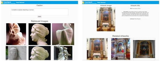 These experimental results laid the foundation for the development of the Smart Retrieval application, designed to address real-world search and annotation needs in museum and archival settings. In particular, the application implements an innovative approach known as Combined Image Retrieval (CIR), which enables advanced multimodal search. Users can issue queries by combining a reference image with a textual description that modifies or refines the intended visual content. This functionality—highly powerful and rarely found in practical systems—was developed and tested as part of the ReInHerit project, with scientific demonstrations presented at ACM Multimedia 2023 and ICCV 2023. The app was designed to be accessible through a web interface and usable even on low-spec hardware, making it particularly suitable for small cultural institutions. It is currently being tested in collaboration with the Europeana Fashion Heritage Association, which provided a dataset of historical images for system evaluation. The entire architecture, based on CLIP, supports not only image retrieval but also zero-shot tagging, enabling automatic image annotation, even in the absence of labeled datasets. This approach extends the capabilities for the access, exploration, and valorization of visual heritage, especially for cultural organizations with limited resources.