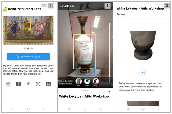 Gallery images in the demo test version are part of WikiArt—Visual Art Encyclopedia. The version also includes a limited selection of artworks provided by museums participating in the ReinHerit project. In addition, the gallery has been populated with images of artworks and additional content provided by small- and medium-sized museums in Italy. As part of dissemination activities, the web app was successfully tested in workshops within museums and the cultural sector, with the enthusiastic participation of diverse users (young people, adults, families, researchers, museum experts, etc.) from different backgrounds (Figure 16).