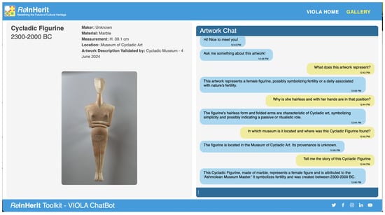 | 15 | VIOLA Chatbot: Co-creation process at ReInHerit Hackathon https://reinherit-hub.eu/summerschool/314ed627-6f30-4d43-9428-4e55aee28066 accessed on 9 July 2025. |