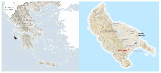 - Schmit, B. The Island of Zakynthos: Impressions and Experiences; Friends of the Museum of Solomos and Eminent Zakynthians Publications: Athens, Greece, 2005. [Google Scholar]