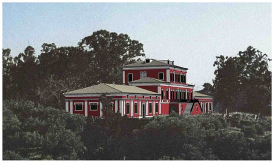 Sarakina was a characteristic example of Zakynthian rural mansion architecture—considered by Dionysis Zivas to be the most important one. The influence of Venetian architecture, particularly the typology of the Renaissance villa, is evident in most rural mansions on Zakynthos, reflected in their symmetry, layout, building program, and morphology. These estates typically had a dual character, serving as both secondary residences and agricultural centers [,,]. In Zakynthos, despite their simplified forms, rural mansions stood out due to their deliberate monumental appearance and strategic location. They were designed from the outset with a form and volume that not only met functional needs but also established them as landmarks, ensuring their social, historical, and architectural significance.