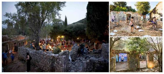 In Zakynthos, there are thirteen museums, one Mycenean archeological site in Gyri, and almost thirty declared monuments, mostly churches, with three Venetian towers among them and five private buildings. The majority of them are located in the central and southern part of the island. These are not registered in the Greek intangible heritage database and none of the island’s settlements are under a protective framework as traditional. However, there are numerous valuable traditional buildings within the settlements of the island that are abandoned and mostly unknown [,], (Figure 4).