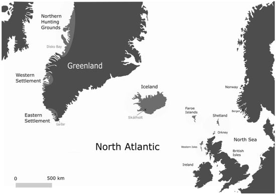 The common cultural heritage of Norse Greenland and Iceland has provided a strong basis for comparison of the settlements in Greenland—without any direct, contemporary historical record—and the historical records and legal texts in Iceland []. Because there is a clear cultural link between these settlements, it has long been used as a basis for direct ethnographic comparison and particularly to explain social and economic organisation of the Norse settlement areas in Greenland [,,,,]. However, the differences in geographical contexts do limit this comparison because of the relative isolation of the Greenland settlement and the different resource systems that led to different styles of sustenance, trade, clothing and settlement structure [,]. However, the extent to which this can indicate anything about the end of settlement is unclear.