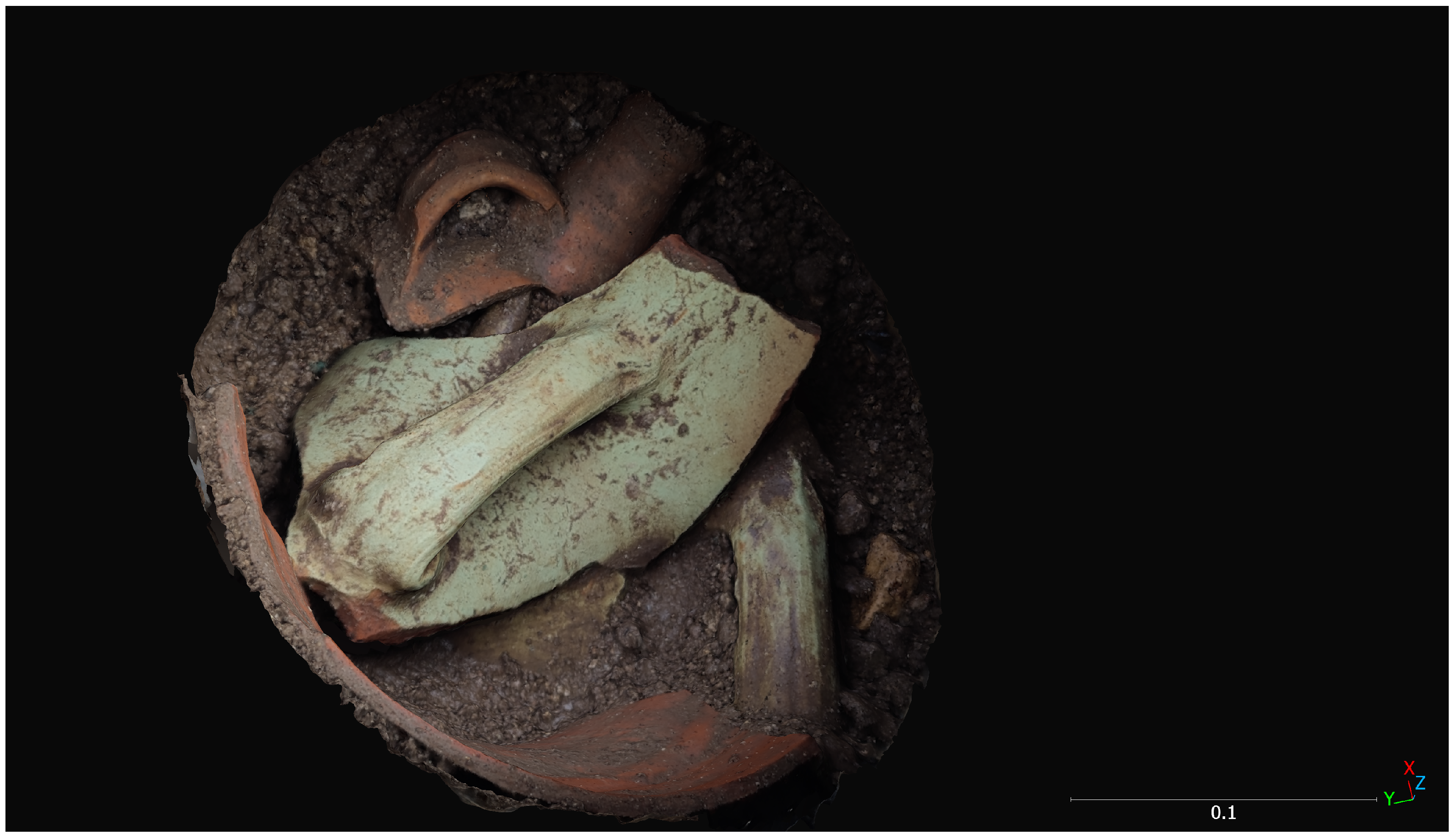 - Integrated surveys, both terrestrial and drone-based, conducted during the excavation, with a complete site acquisition performed at the end of the excavation period. These surveys aimed to document the subjects at higher resolution, enabling the creation of reusable 3D models.