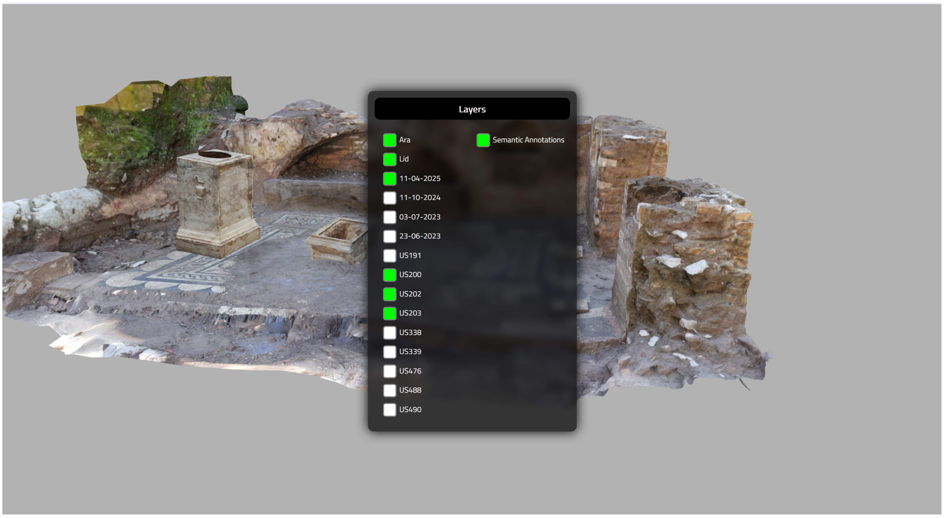 APA StyleLombardi, M., & Dubbini, R. (2025). From Earth to Interface: Towards a 3D Semantic Virtual Stratigraphy of the Funerary Ara of Ofilius Ianuarius from the Via Appia Antica 39 Burial Complex. Heritage, 8(8), 305. https://doi.org/10.3390/heritage8080305