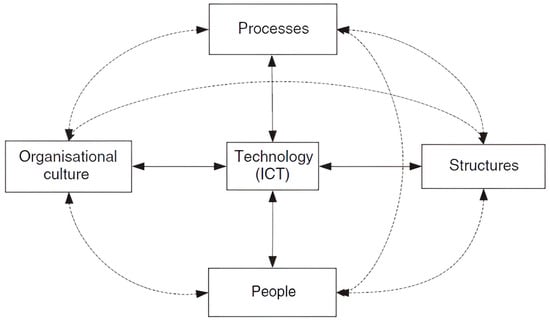 - Leavitt, H.J. Applied organizational change in industry: Structural, technological and humanistic approaches. In Handbook of Organizations (RLE: Organizations); Routledge: London, UK, 2013; pp. 1144–1170. [Google Scholar]