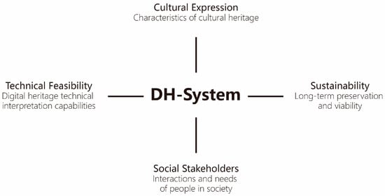 - Sustainability, cultural heritage, as a well-positioned development sector, operates under sustainability principles [86], which the digitisation process should maintain. This parameter addresses the long-term viability of DH, and the analysis examines whether the model has the capacity to balance the progressive nature of technological developments with the static nature of cultural heritage.
