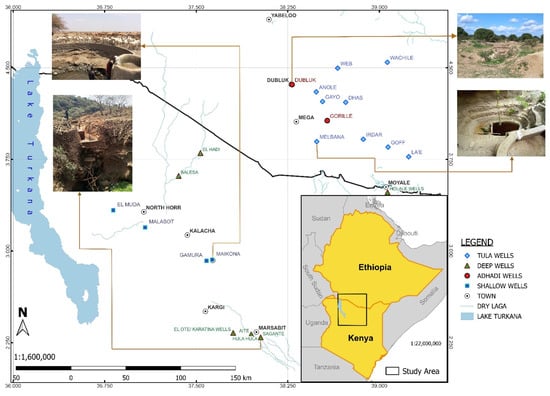 - M’Mbogori, F.N.; Kinyua, M.G.; Ibrae, A.G.; Lane, P.J. Changes to water management and declining pastoral resilience in Marsabit County, northern Kenya: The example of Gabra wells. WIREs Water 2022, 9, e1609. [Google Scholar] [CrossRef]