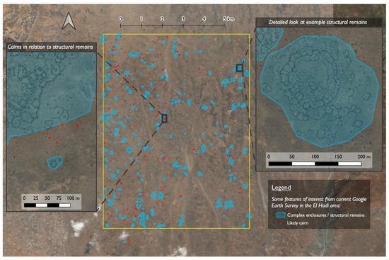 Illustration of stone-walled enclosures visible on Google Earth™ in proximity to a cluster of hand-dug wells near Balesa, Marsabit County, Kenya. Image prepared by Ed Burnett, MAEASaM Project, University of Cambridge.