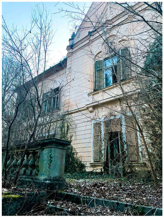 Recent studies in cultural geography and spatial anthropology have begun to direct particular attention towards the subject of modern ruins []. These ruins are being examined not only as architectural forms but also as indicators of the relationship between time, functionality and identity [,,,]. Edensor [] begins his analysis with abandoned industrial sites in the UK, but subsequently develops concepts that are applicable more widely. For example, he proposes the idea that ruins are not seen as a sign of failure but rather as a different form of expression of the landscape, where memory is preserved informally, outside of the circuits of tourism and institutions [,,]. Edensor [] identifies these spaces as “places of productive ambiguity” that have the capacity to generate new forms of understanding of the past, even in the absence of traditional conservation. In this respect, the relationship between space and identity is fundamental to understanding heritage [,]: the rural castle is not merely an isolated building, but rather part of a socio-spatial ecosystem that encompasses the estate, the village, the forests, and auxiliary structures (chapel, stables, arboretum). It is therefore the product of a relationship between multiple temporalities and visions, and in the case of rural castles, the temporal poles represented by the nobility, communism and transition coexist in unresolved tension [,].