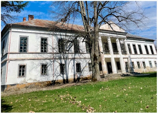 In most cases, these castles were the noble residences of large landowners or bourgeois families in 19th-century Austria-Hungary []. After World War I and the disintegration of Austria-Hungary, the entire region returned to Romania, which brought changes in the ownership of some castles. Moreover, the agrarian reform of that period reduced the size of the estates. The fate of the castles changed abruptly after the advent of communism, when they were nationalized and converted into mental hospitals, schools for disabled children or headquarters for agricultural cooperatives []. The fall of communism was followed by a turbulent period in which the castles continued to deteriorate, and no investment was made due to the uncertainty surrounding ownership. Today, the situation of the owners is largely clear, with the state returning the properties to their legal heirs, but their state of disrepair continues due to the large sums that would need to be invested.