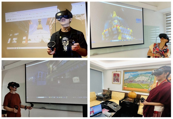 Each participant’s session began with a three-minute orientation that introduced the cultural significance of clockwise circumambulation and provided basic instructions for navigation in the VR and Minecraft environment. Following the briefing, the participants engaged in a 15–20 min self-guided virtual pilgrimage. The primary objective was to complete one full circumambulation of the stupa while interacting with the seven primary ritual nodes, each corresponding to a significant location at the real-world site. The virtual journey also incorporated elements of expanded sacred space, utilizing the affordances of the digital medium—such as an accessible interior chamber for lamp offerings and a hidden pure land area—to extend ritual engagement beyond the physical limitations of the actual stupa.