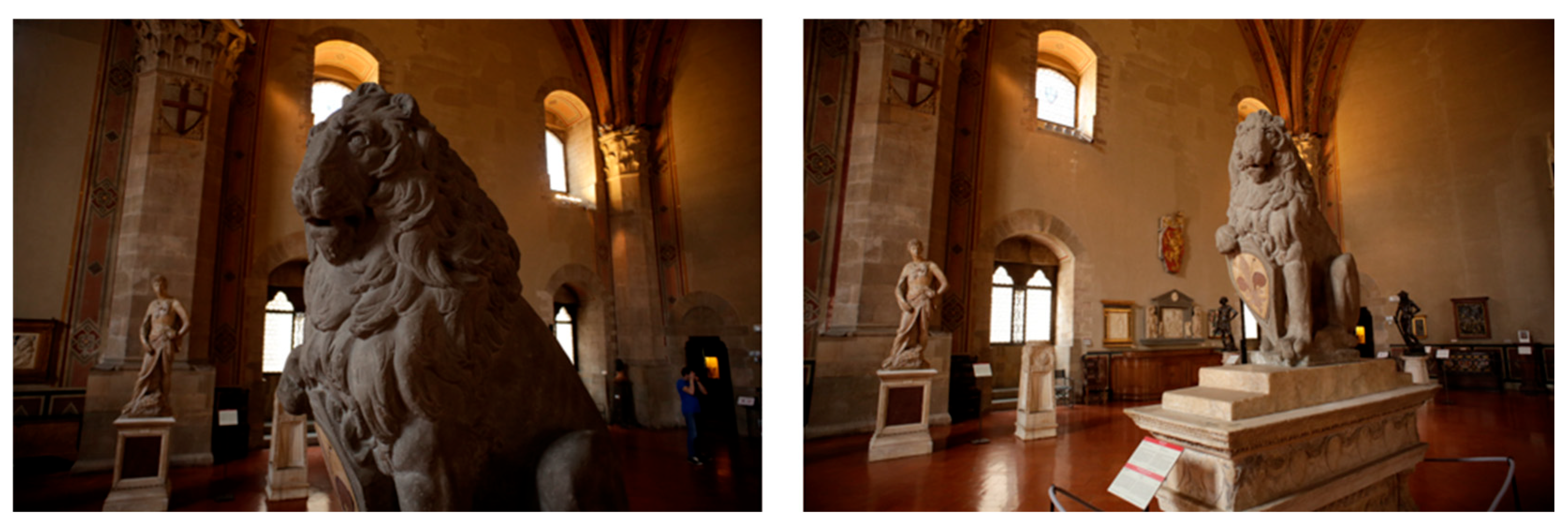 The work offered an exhaustive investigation of “Marzocco”, facing its possible collapse mechanisms, overturning and sliding. It explains the importance of a careful assumption of the seismic input, which must take into account the exact position of the artwork within the exhibition building. Furthermore, the work shows a consistent parametric analysis of the main choices affecting the analysis, and it provides a comprehensive assessment of the seismic safety of “Marzocco”.