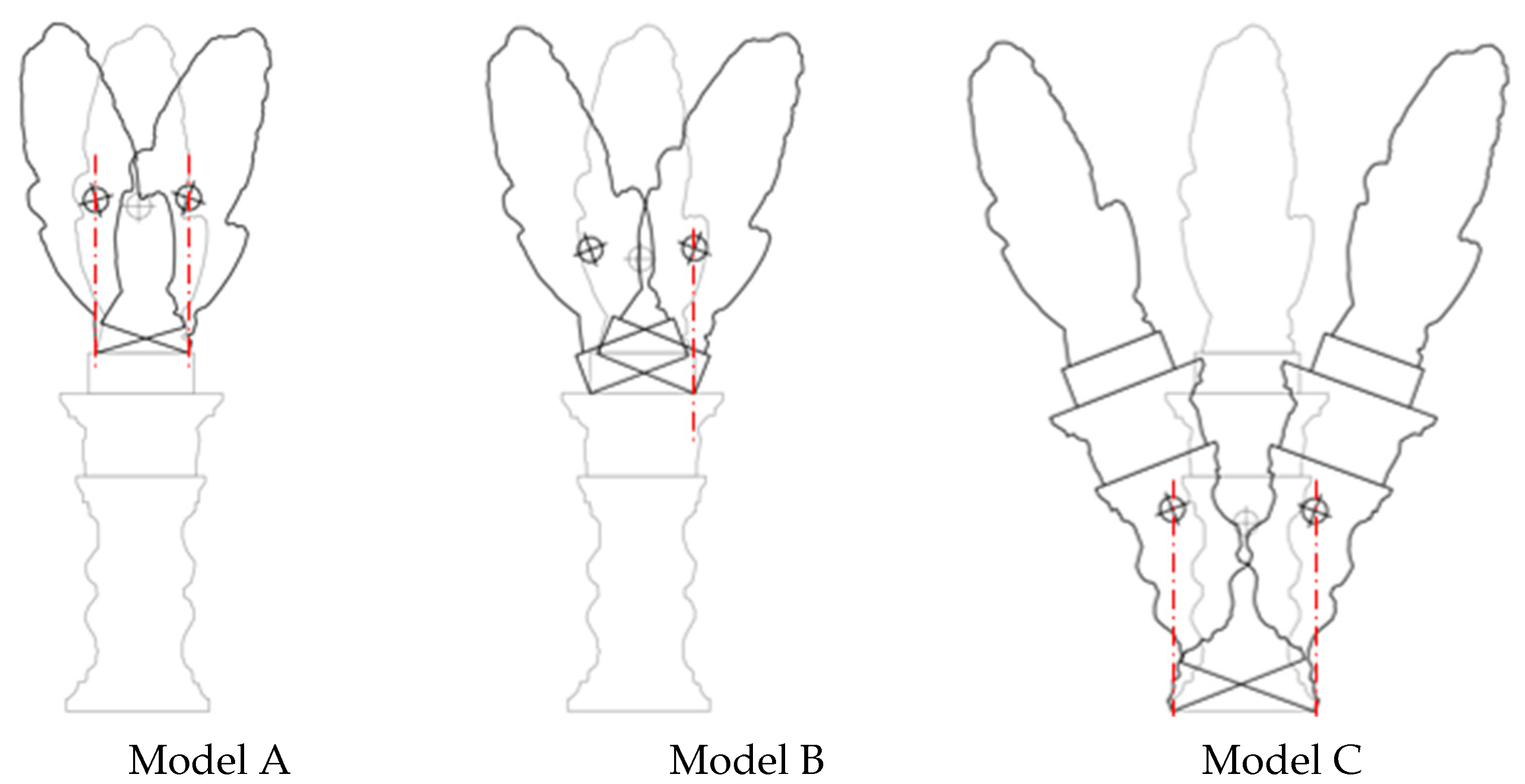 The artwork consists of a stone statue placed over a marble base and a further marble pedestal; therefore, three overturning mechanisms have been considered, respectively involving the statue only (Model A), the statue and the base (Model B), and the entire complex, i.e., the statue, the base, and the pedestal (Model C).
