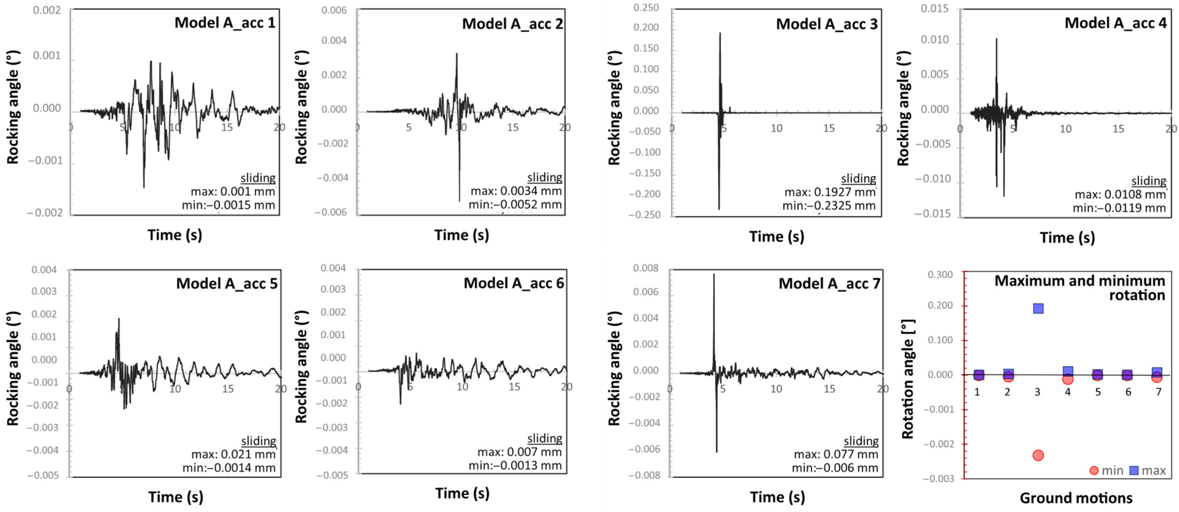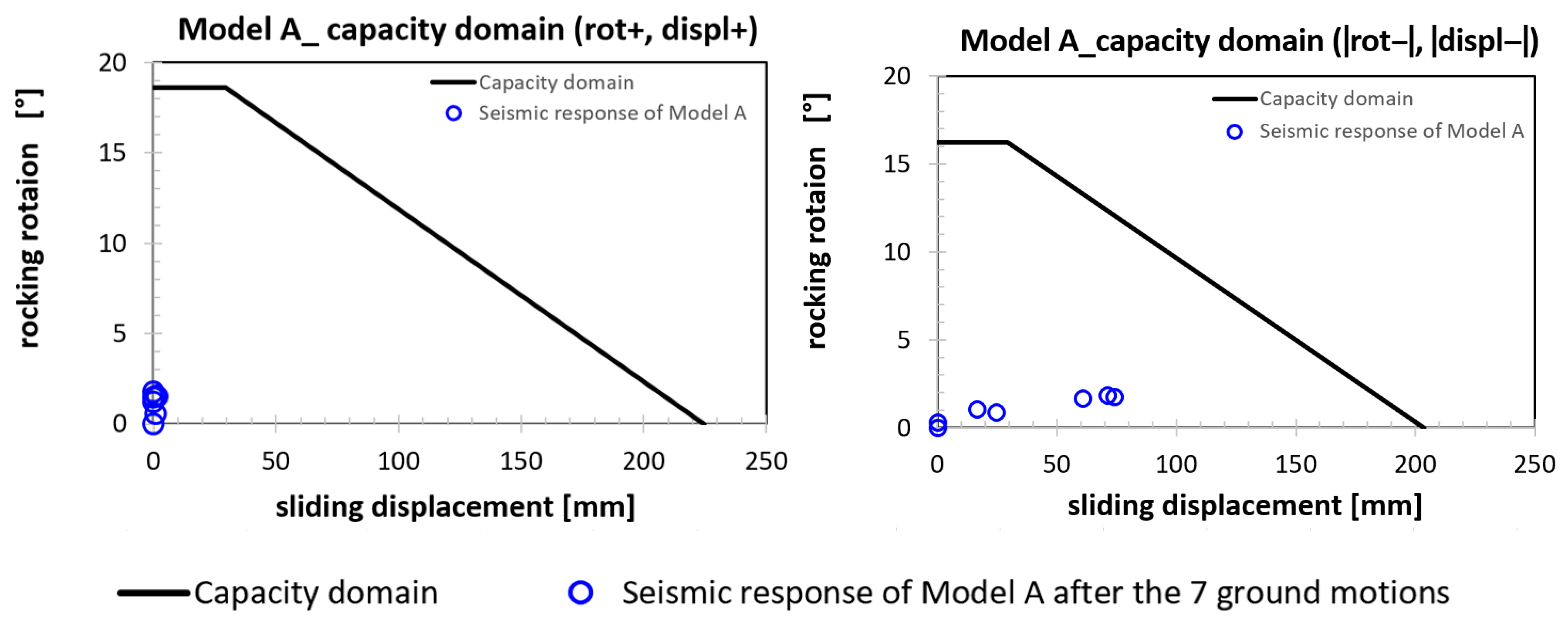 The seismic performance of the case study fully complies with the limit conditions both for rocking and sliding.