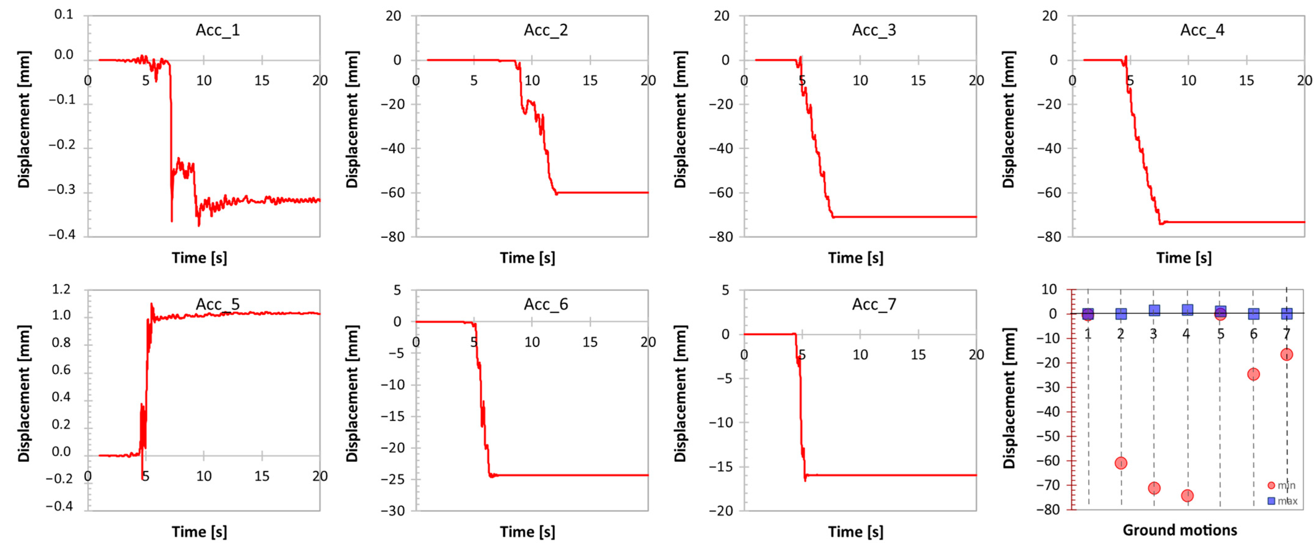 22]. In this work, the seismic response of the artwork is represented through a time-history analysis, where the seismic input consists of an ensemble of seven ground motions, whose average spectrum closely fits the elastic spectrum provided by the Italian Technical Code [