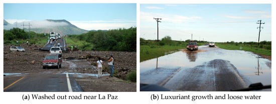 9]. On the way from La Paz (at the southern end of the peninsula) to San Ignacio (in the central part), the road was destroyed by water and debris in one of these streams (