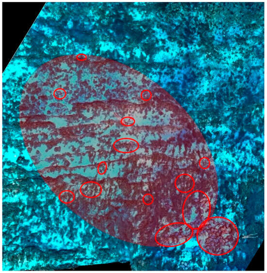 In 2015, a non-looted site off the eastern coast of Žirje (Figure 4a) at a depth accessible to sport divers was unexpectedly discovered [16]. The initial expert survey concluded that the site consisted of a group of Corinthian B-type amphorae lying on a rocky slope of the seabed, with associated scattered material covering an area of approximately 20 by 50 m, at depths ranging from 20 to 38 m. The amphorae cargo spanned along a series of submerged rocky terraces. Besides transport containers, the site contained the cargo of small jugs with the so-called Heracles’ knot on the handles, and various kitchenware from the ship’s galley. Obviously, the finds presented the evidence of a shipwreck site, dated to the second half of the 4th century BC. A small merchantman ended at the rocky sea bottom, leaving amphorae and other cargo remains, but no obvious evidence of the hull. Two documentation campaigns performed in 2016 and 2017 produced a precise photogrammetric plan of the site.