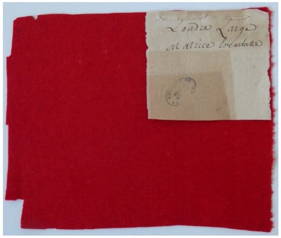Among the abundance of reds that can be obtained from insects and plants, such as madder (Rubia spp.) and brazilwood (Paubrasilia echinata and Biancaea sappan) from plant sources, and from insect sources, kermes (Kermes vermilio), lac-dye (Kerria spp.), early sources of cochineal: Porphyrophora spp., including Polish cochineal (P. polonica) and Armenian cochineal (P. hamelii), and then American cochineal (Dactylopius coccus) [20,21]; one red stood out in the 18th century—the scarlet red. Historically, this bright, brilliant colour was obtained from red-dye insects. Colours derived from animal sources, despite being less abundant, are often highly concentrated in chromophores, resulting in high chromatic quality and good lightfastness. They are especially efficient for dyeing animal fibres [22,23,24]. This let to high demand, increased prices, and a strong association with royalty, prestige, and wealth [24,25,26].