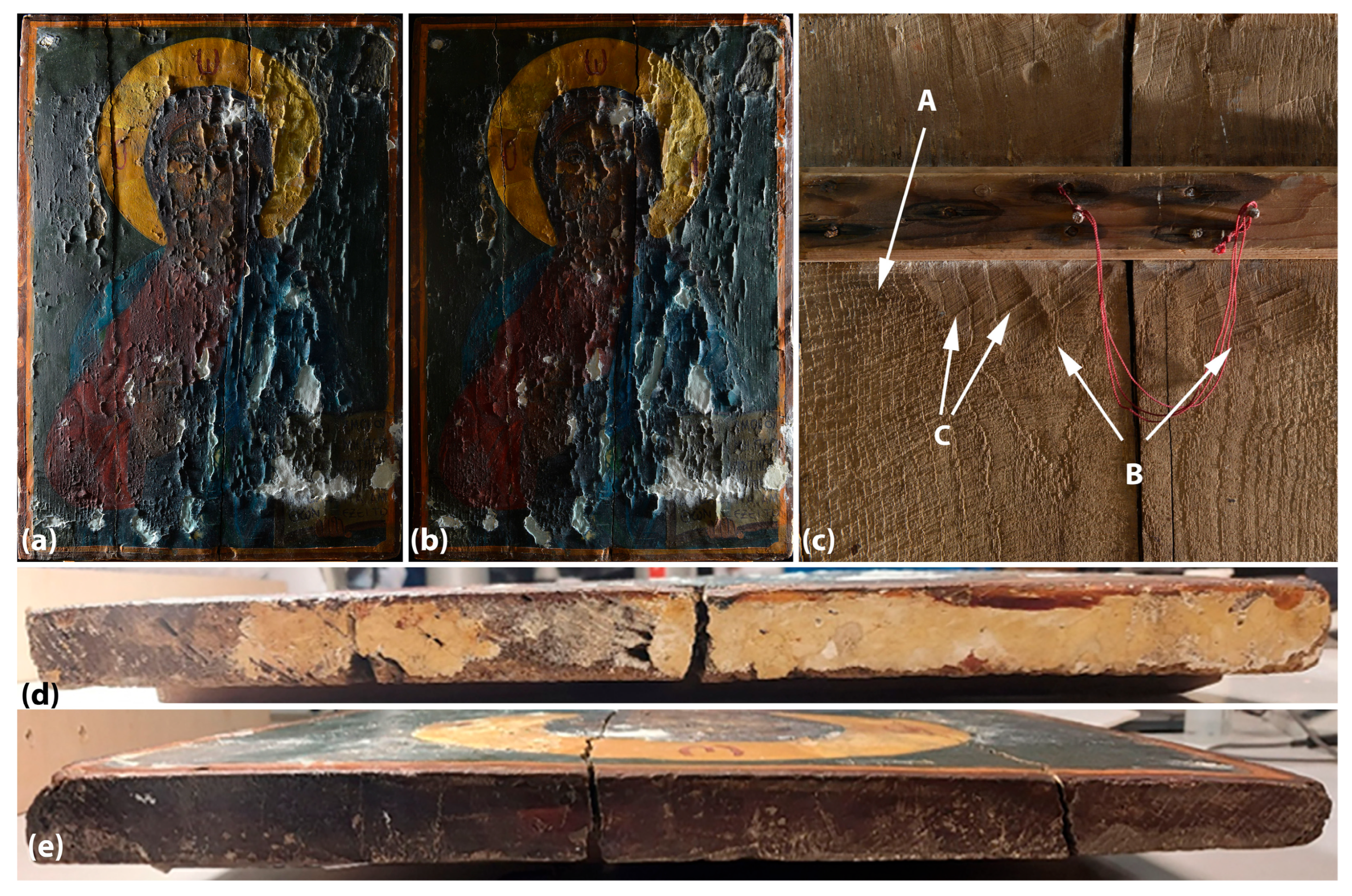 - Stassinopoulos, S. Icon Supports. In The Conservation of Easel Paintings; Wadum, J., Streeton, N., Eds.; Routledge: London, UK, 2020. [Google Scholar]