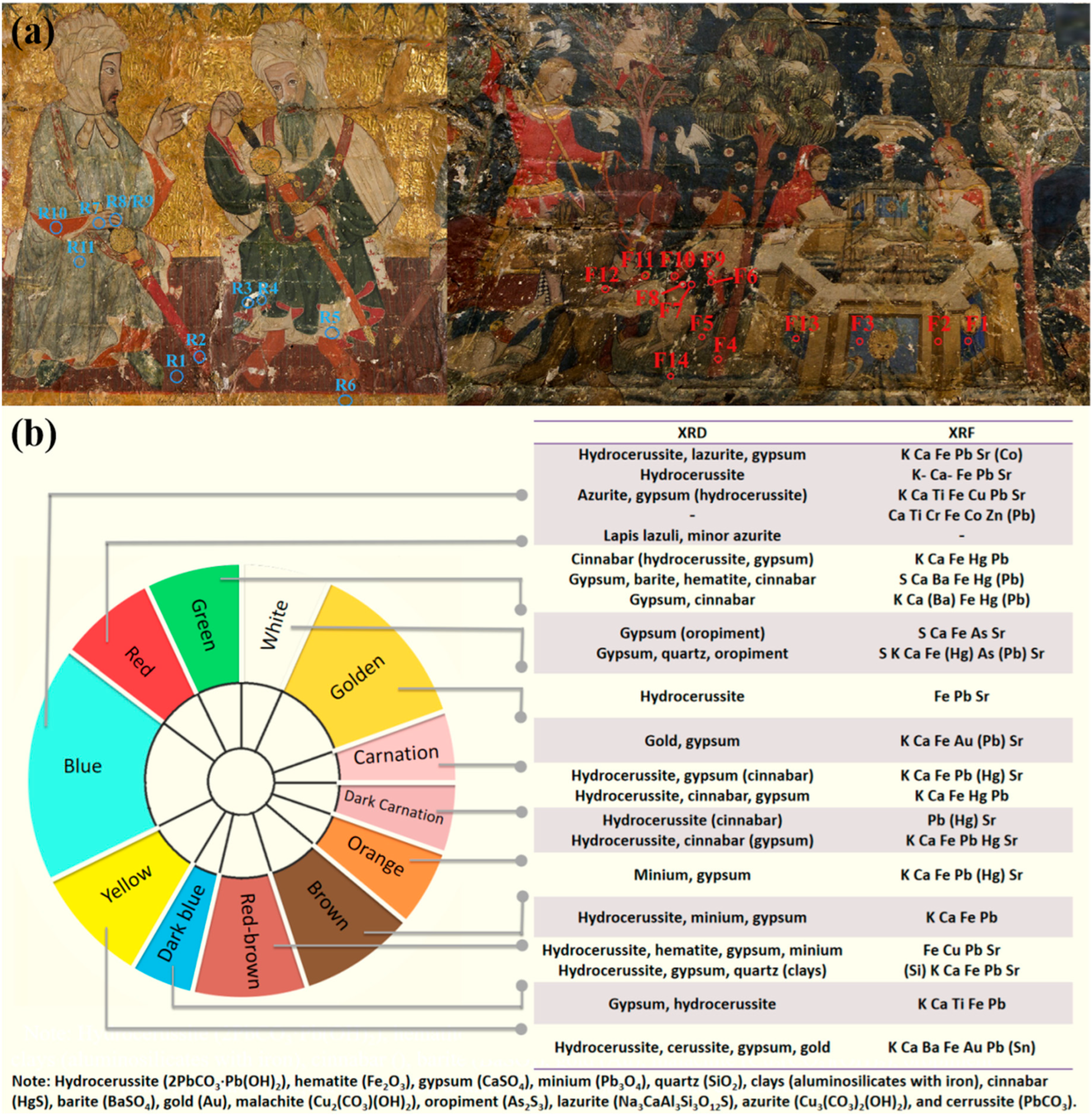 - Gómez-Morón, M.A.; Ortiz, P.; Martín-Ramírez, J.M.; Ortiz, R.; Castaing, J. A new insight into the vaults of the kings in the Alhambra (Granada, Spain) by combination of portable XRD and XRF. Microchem. J. 2016, 125, 260–265. [Google Scholar] [CrossRef]