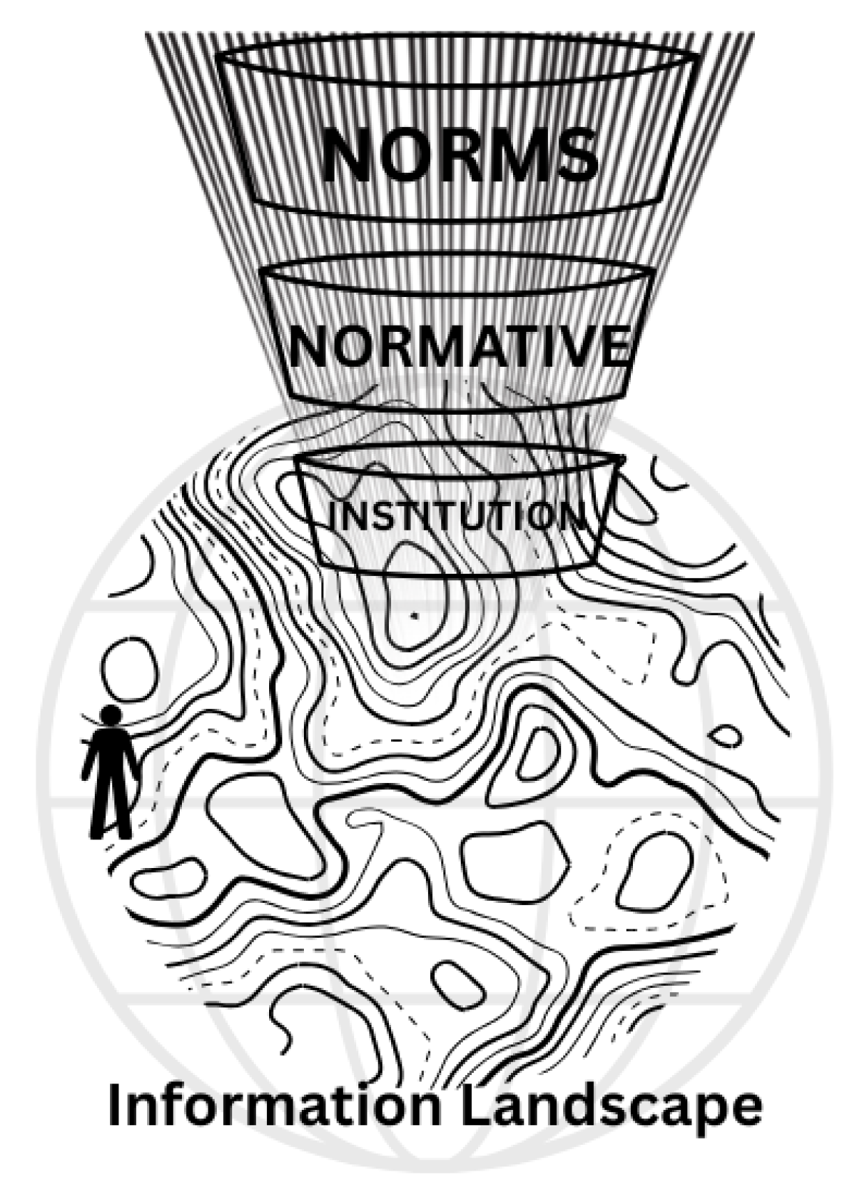 This model synthesizes elements of cultural evolution, network theory, and complexity theory in suggesting that societies thrive when their information landscapes efficiently structure and distribute critical knowledge within their physical and social contexts. Unlike previous models that focused on either structure or agency, this approach emphasizes how cultural norms and institutions dynamically evolve to regulate uncertainty and enhance individual and collective fitness. It defines norms, normativity, and institutions as structural moments on an information landscape, with each moment reflecting the increasing stability of its emergent cognitive and social processes.