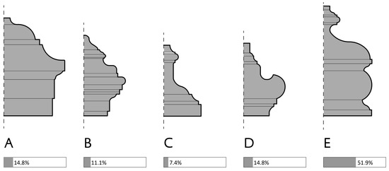 - Vignola, J.B. Regola delli Cinque Ordini d’Architettura; Plate XXXVI; Camera Apostolica: Rome, Italy, 1563. [Google Scholar]
