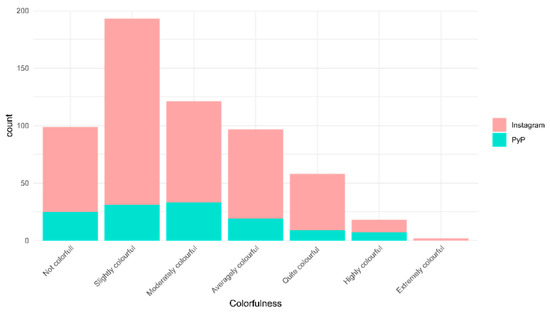 The image saturation analysis employed Hasler and Süsstrunk’s [63] classification methodology. We used both Kolmogorov–Smirnov and Wilcoxon rank-sum tests based on the data characteristics: 97.1% unique values with minimal ties (2.9%) satisfied the Kolmogorov–Smirnov assumptions, while similar right-skewed distributions across the platforms (skewness: Personas y Patrimonios = 0.69, Instagram = 0.81) validated the Wilcoxon test usage for location comparison.