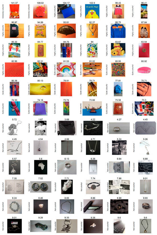 Finally, the moderately saturated images dominate the categories “art” (n = 16; 13.22%), “toys” (n = 16; 13.22%), “jewelry” (12.40%), and “everyday objects” (12.40%). Beyond these color and saturation patterns, we also examined how these heritage objects were compositionally arranged within the image frame using a multimodal AI system.