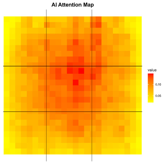 To analyze the compositional patterns, we divided each image into a 3 × 3 grid corresponding to the rule of thirds framework, with additional assessment of central placement (the middle third of both horizontal and vertical axes). The high-intensity regions in the superimposed attention maps indicate the areas where heritage objects consistently draw the AI model’s focus. The rule of thirds is evidenced when the attention peaks align with the four intersection points of the grid lines (particularly the upper-right intersection), while central placement is indicated by a high attention intensity in the center quadrant of the image frame.