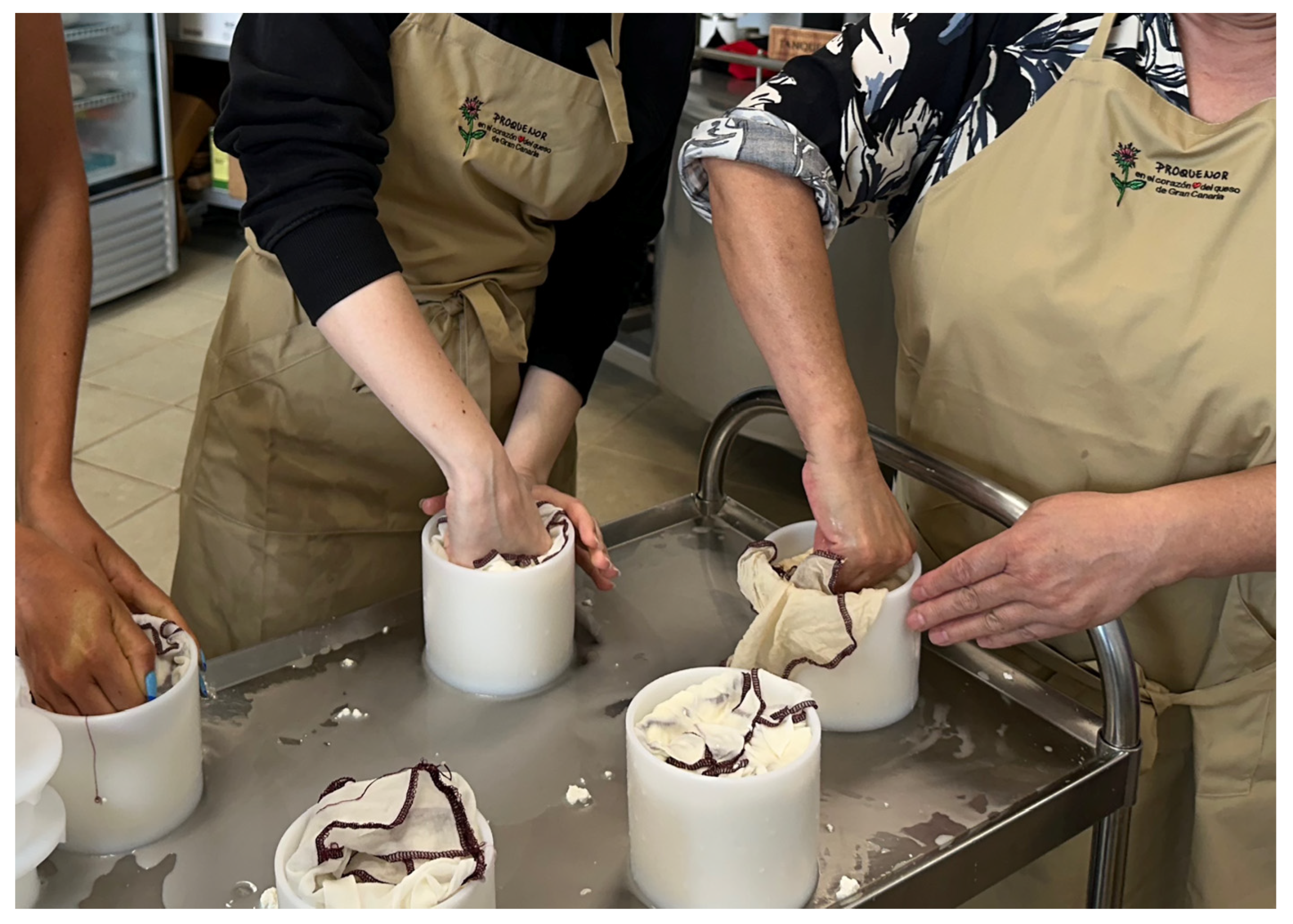 49], created in 1998 to secure the Protected Designation of Origin for Queso de Flor de Guía, has become a key factor in this field (The Queso de Flor de Guía takes its name from the use of a vegetable rennet, obtained from the infusion of thistle flower pistils, and from the name of the municipality of Guía in the north of the island, a place historically dedicated to breeding). Its headquarters, the Casa del Queso (Cheese House), functions as a cultural and commercial hub offering guided tours, workshops and tastings, serving simultaneously as a venue for promoting local products and as an interpretive centre for the rural heritage of the island’s northern regions. Parallel to this, the revitalization of wool-related practices has gained visibility through events such as the Fiesta de la Lana (Wool Festival) in Caideros, celebrated every 30 May since 1994 [