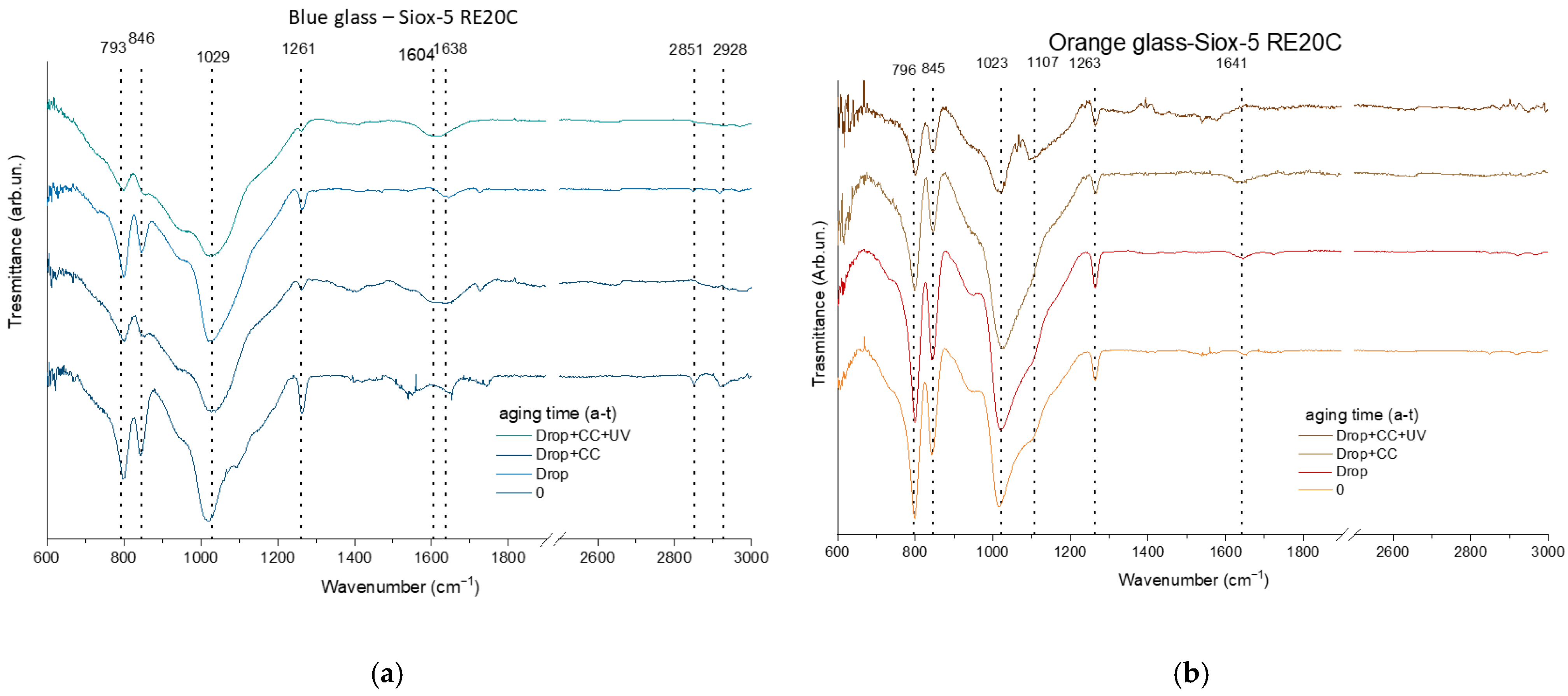 - Handke, M.; Mozgawa, W.; Nocuń, M. Specific Features of the IR Spectra of Silicate Glasses. J. Mol. Struct. 1994, 325, 129–136. [Google Scholar] [CrossRef]