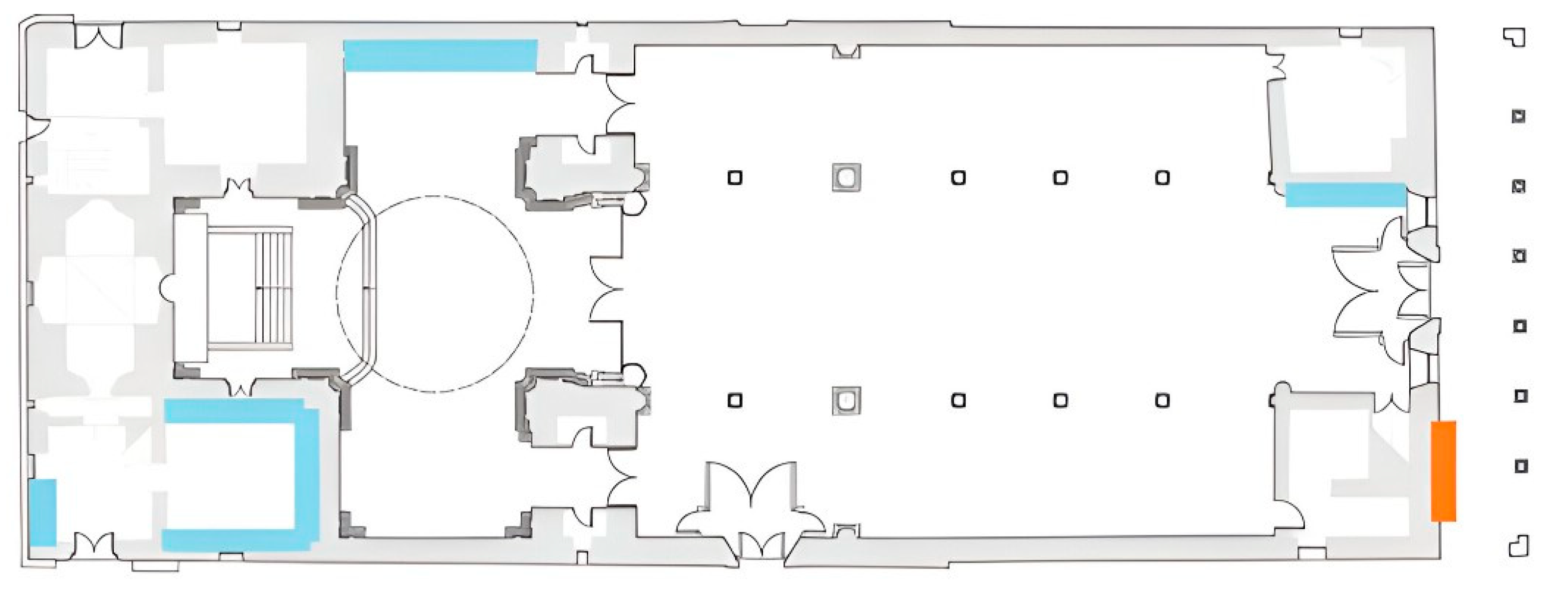 Taking these ‘logics’ into account, we can arrive at different hypotheses for relocation; once again, one of minimums and one of maximums. The minimal hypothesis is based on the tiles that have been preserved, both those in their current position on the wainscoting and those that have been relocated to the rector’s office in the Basilica. In total, we have been able to locate thirty tiles, among which the appearance of two musicians (with a fife and a drum) and a standard-bearer stands out [