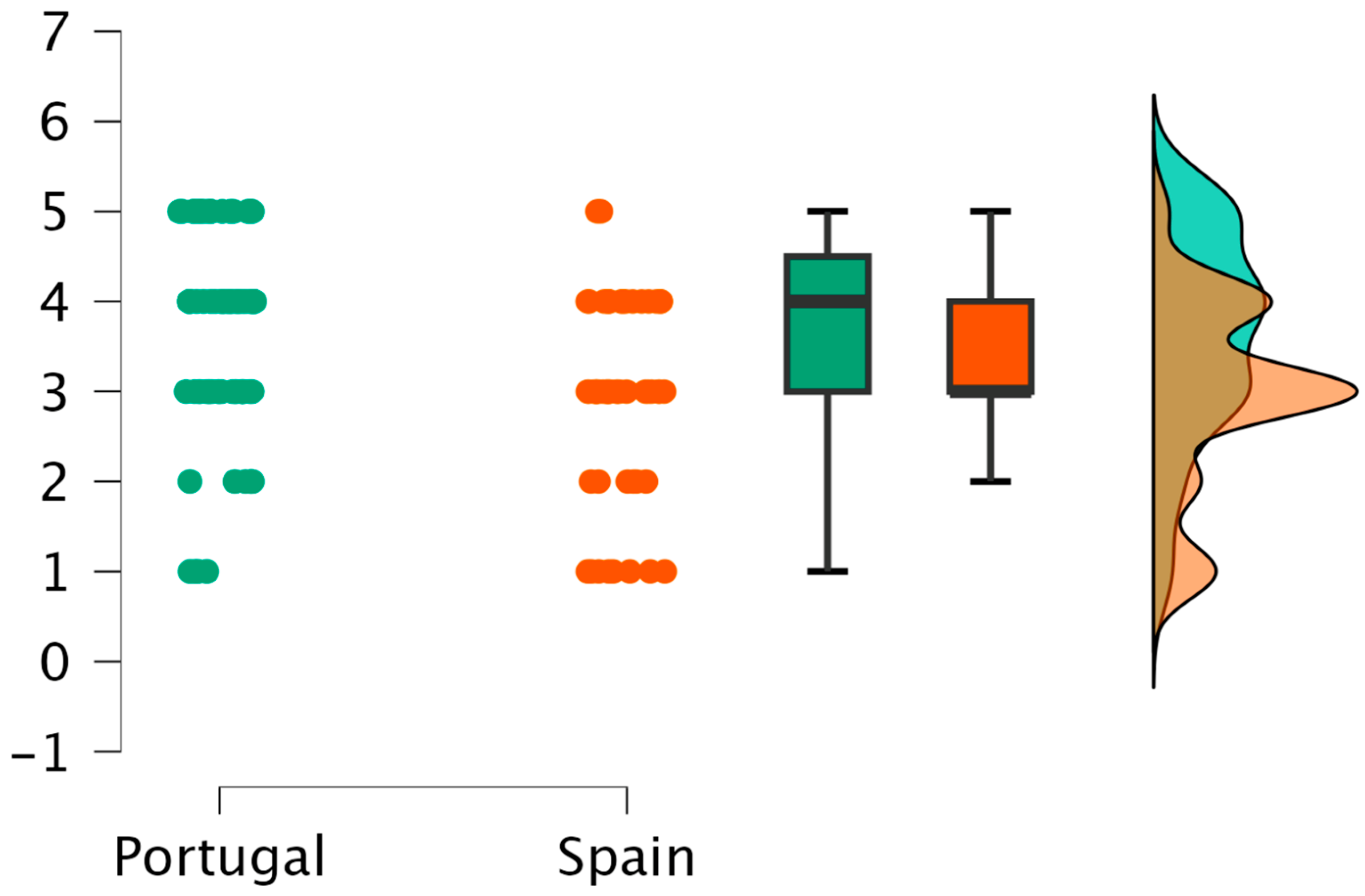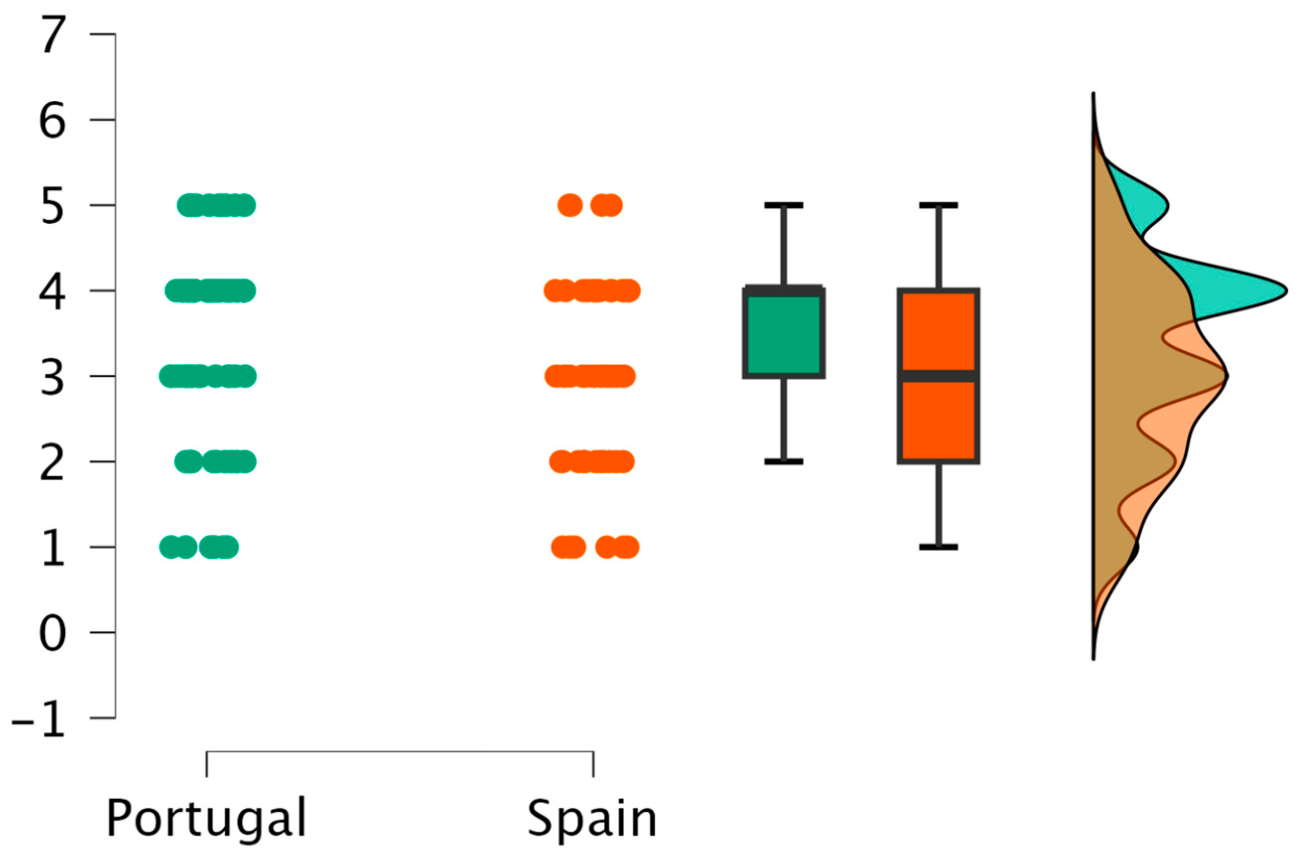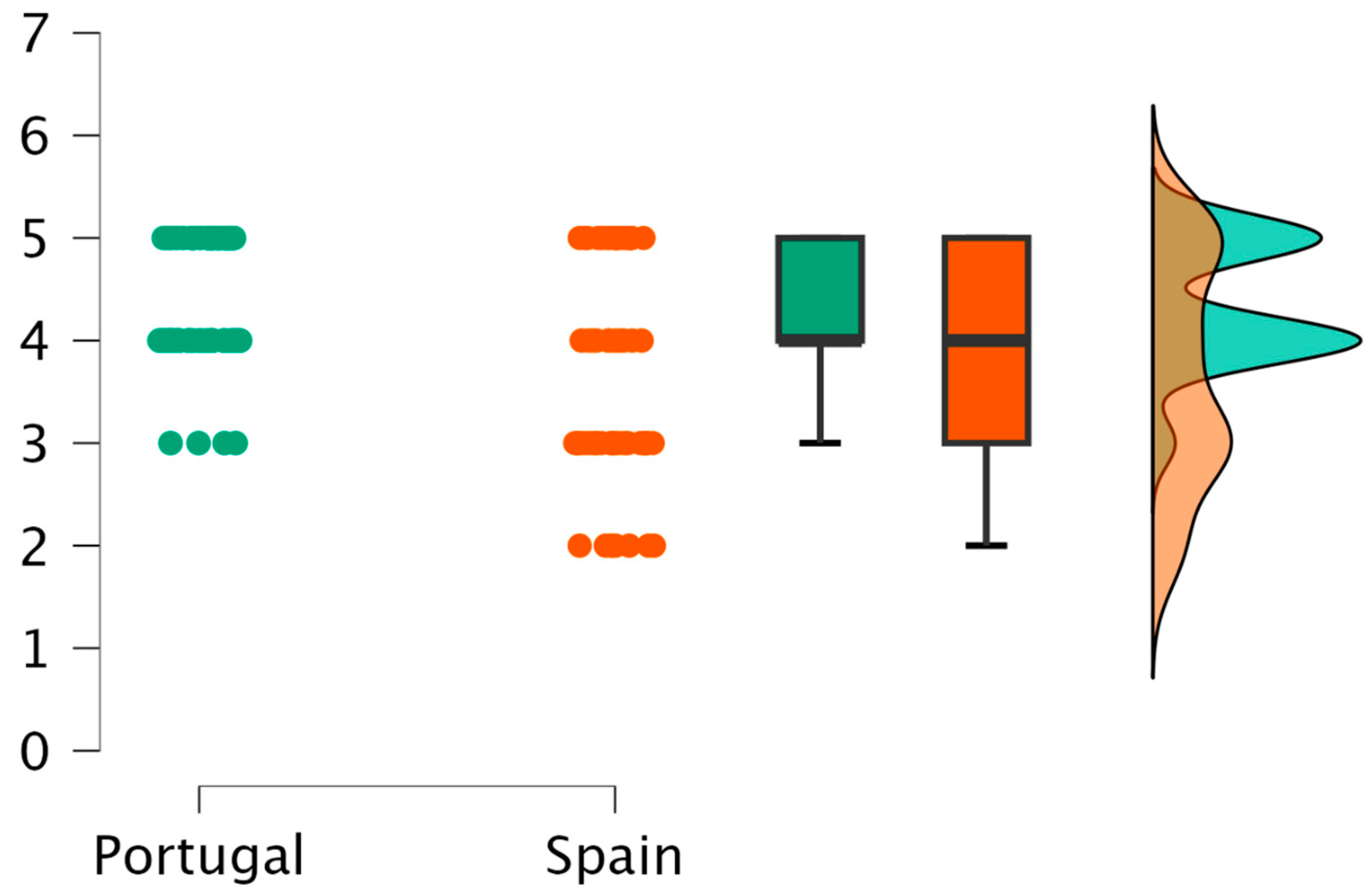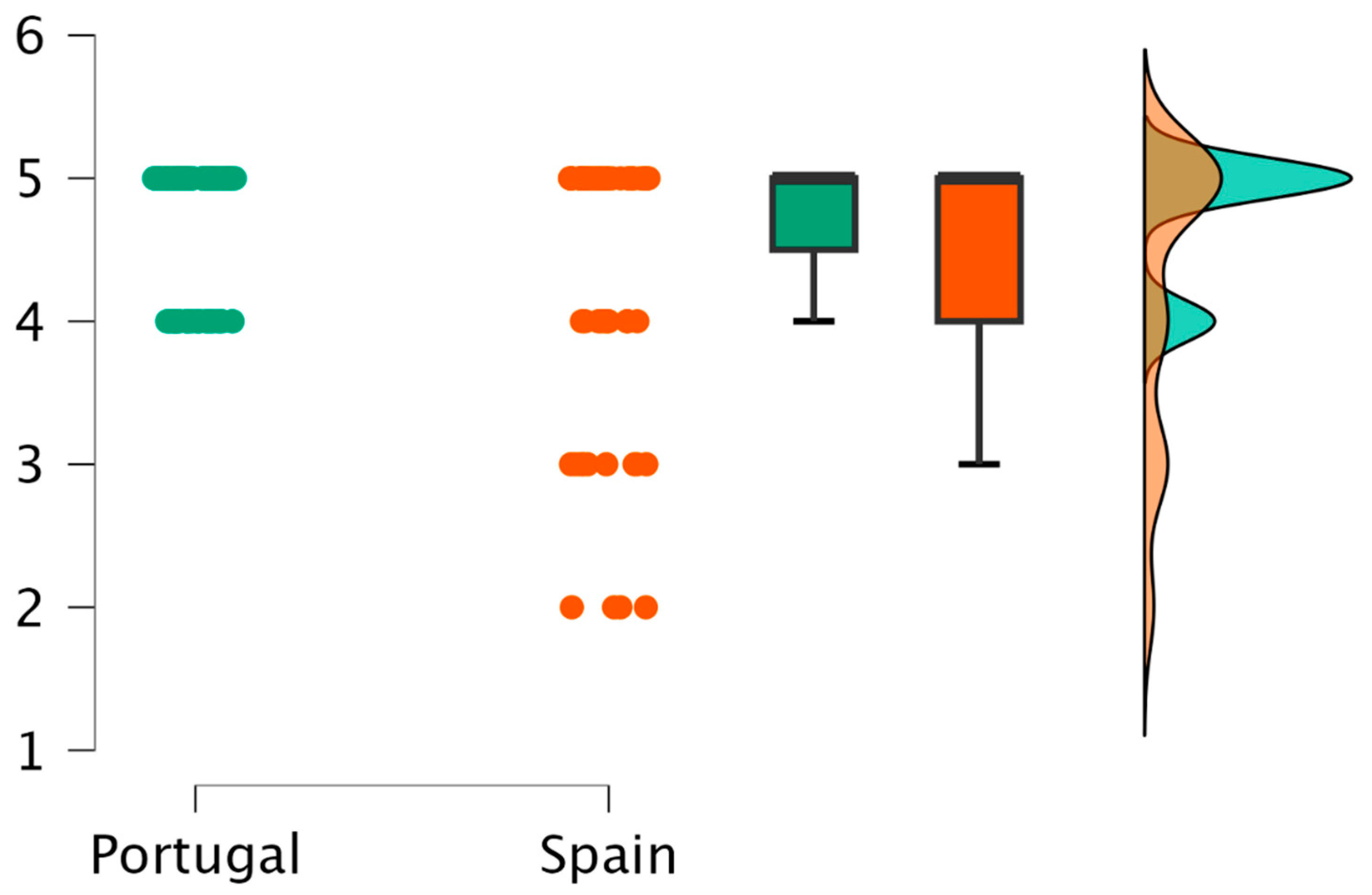 The analysis of perceived adequacy of didactic and heritage resources revealed additional cross-national differences. Portuguese participants rated several resources significantly higher than their Spanish counterparts. These included museums (