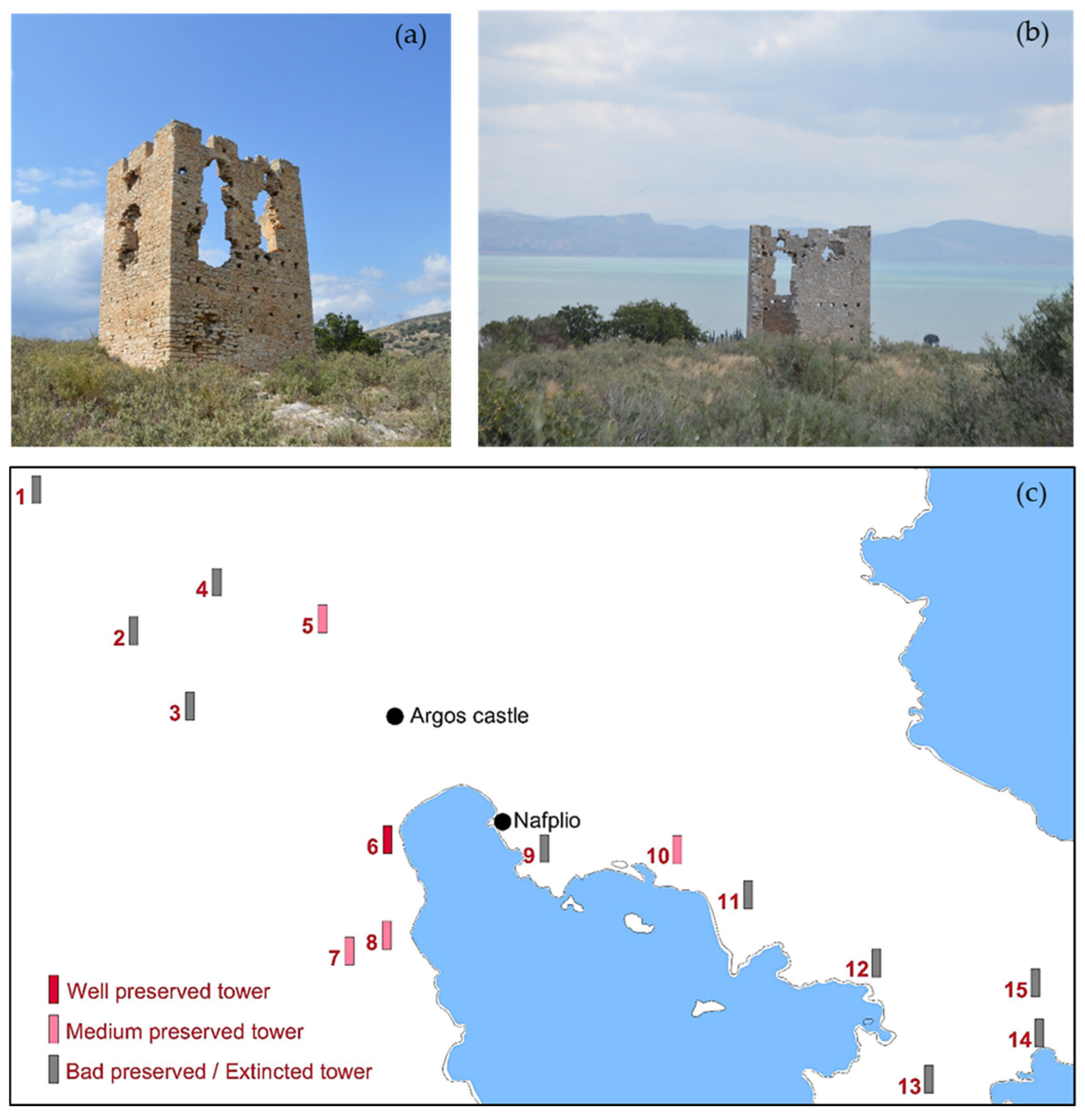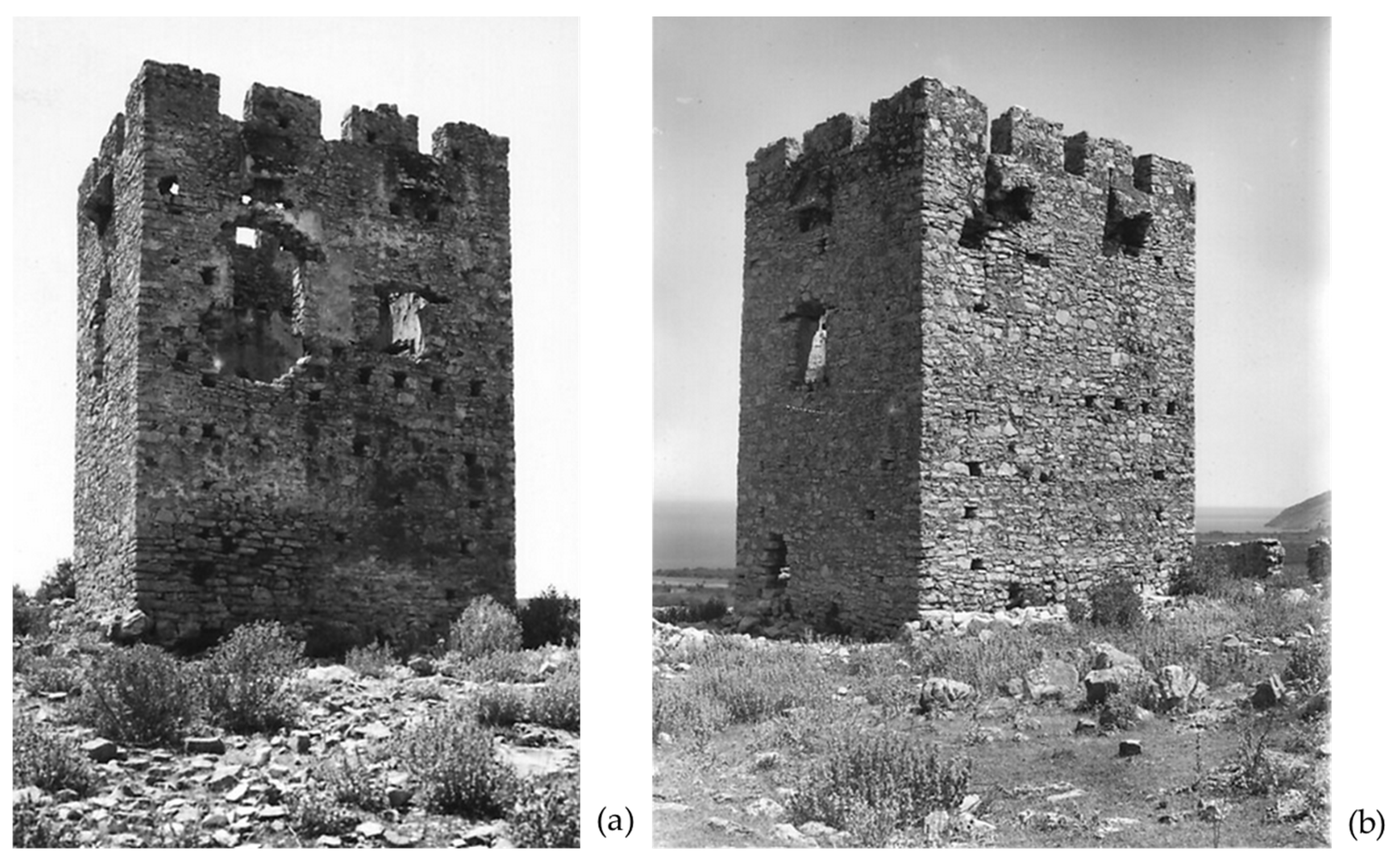- Pikoulas, G. Towers: Network, function, issues and research questions. An approach based on data from Argolis, Arcadia, and Laconia. Horos 1990–1991, 8–9, 247–257. (In Greek) [Google Scholar]