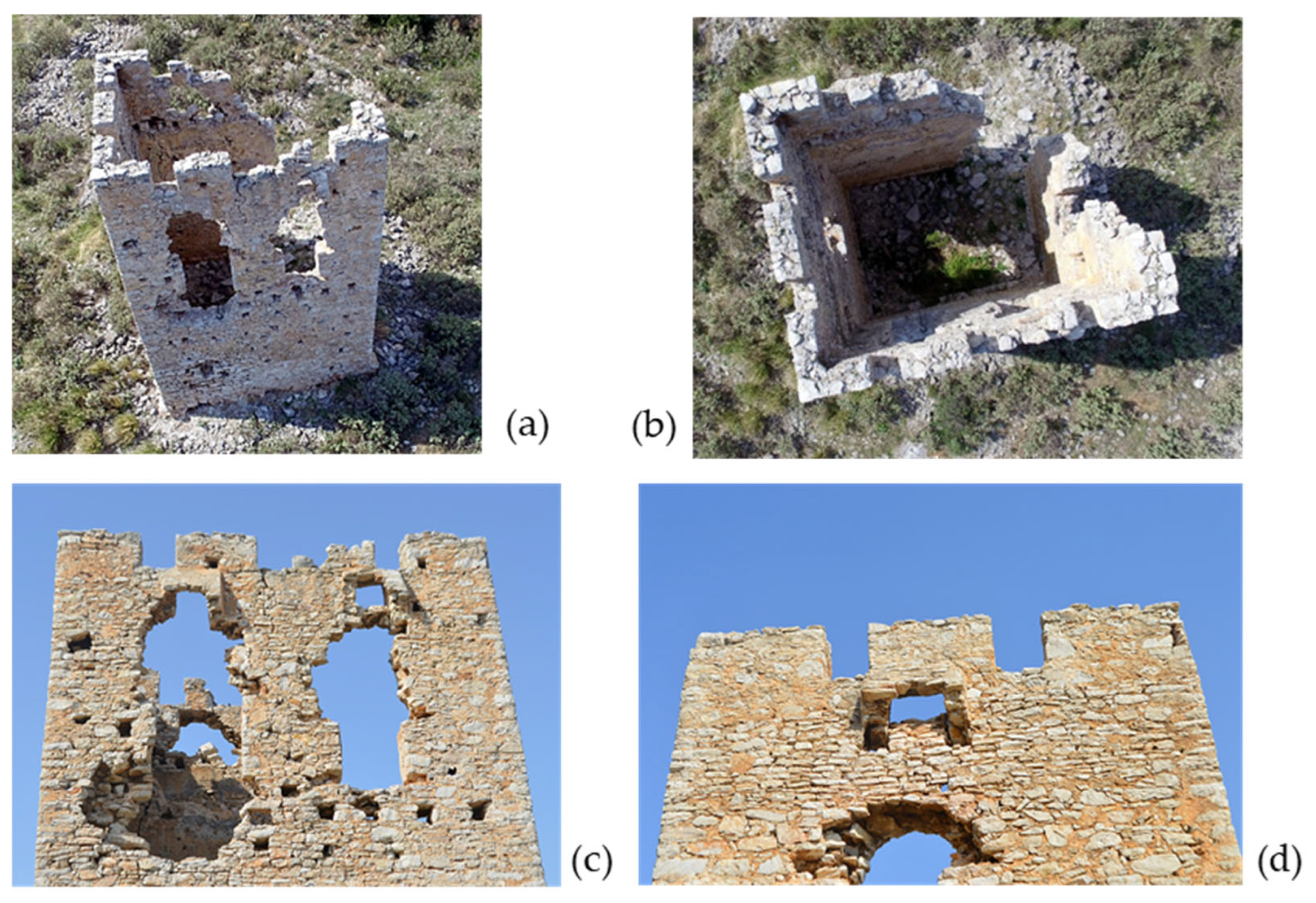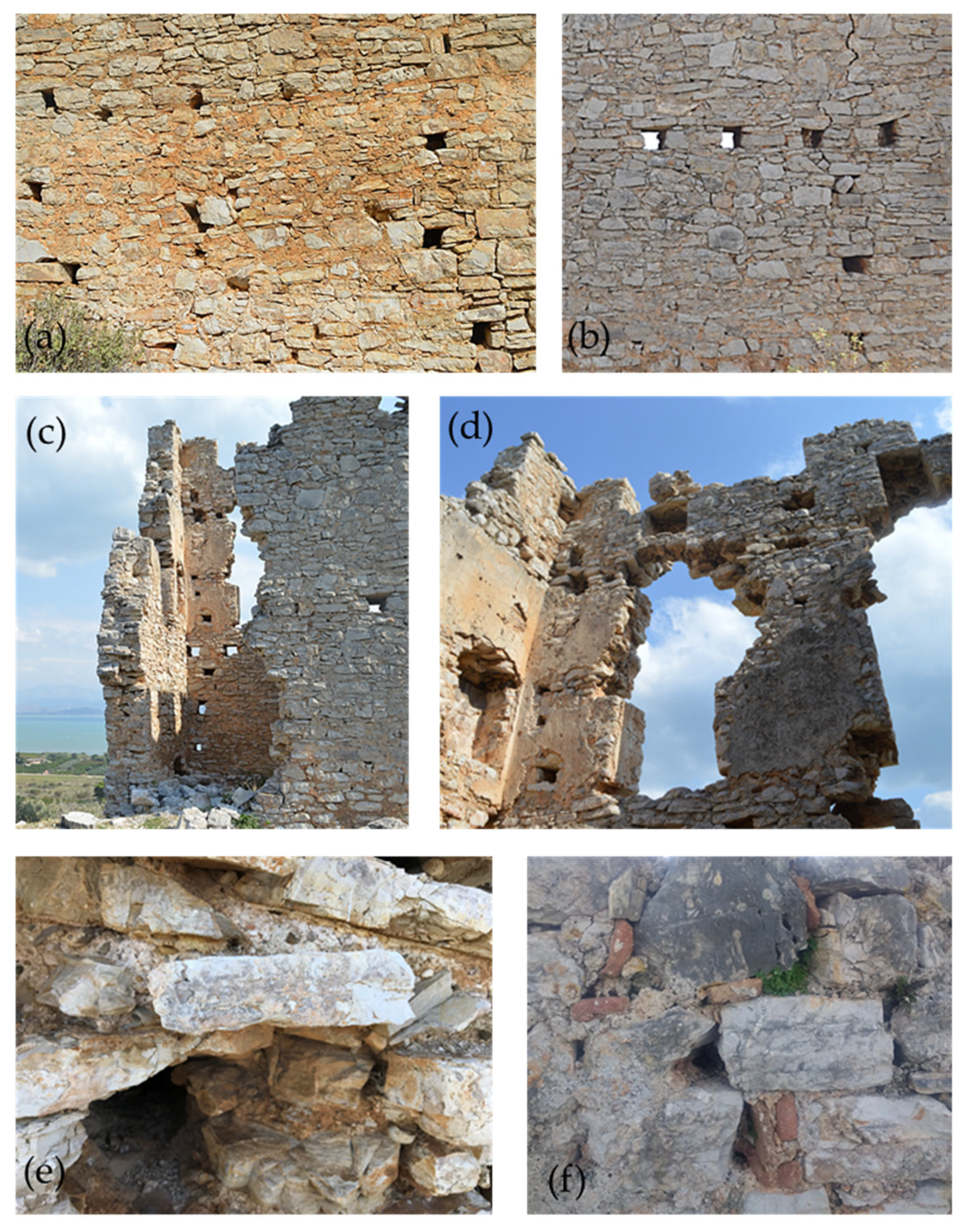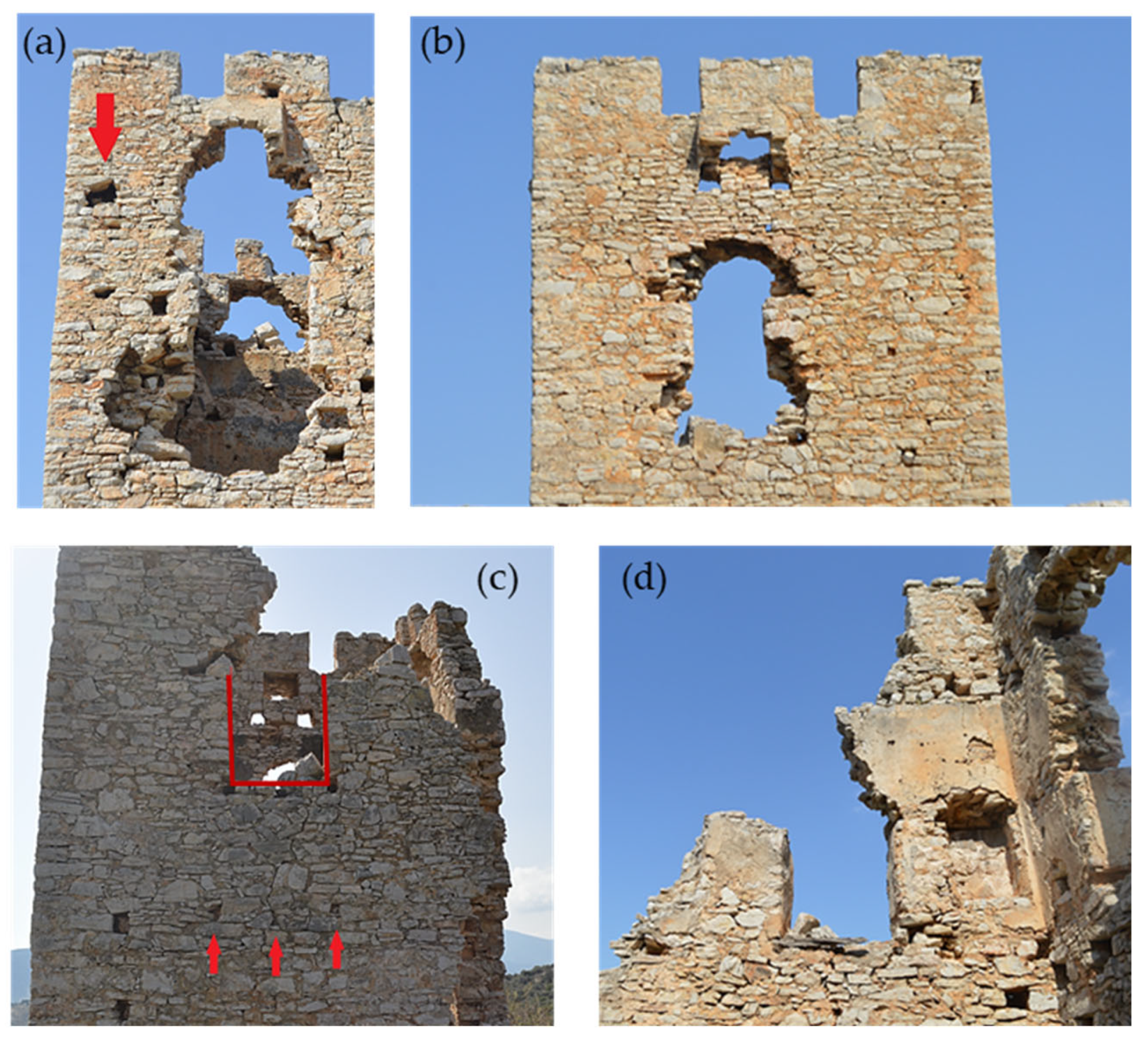 - Dimitroulias, K.; Koliatsi, P.; Alvanou, E. Architectural and historical documentation of the so-called “Castle of Monovyza” in Stavri, Gortynia. In Proceedings of the Third International Scientific Meeting, Archaeological Work in the Peloponnese (AWOP 3), Kalamata, Greece, 2–5 June 2021. (In Greek) [Google Scholar]