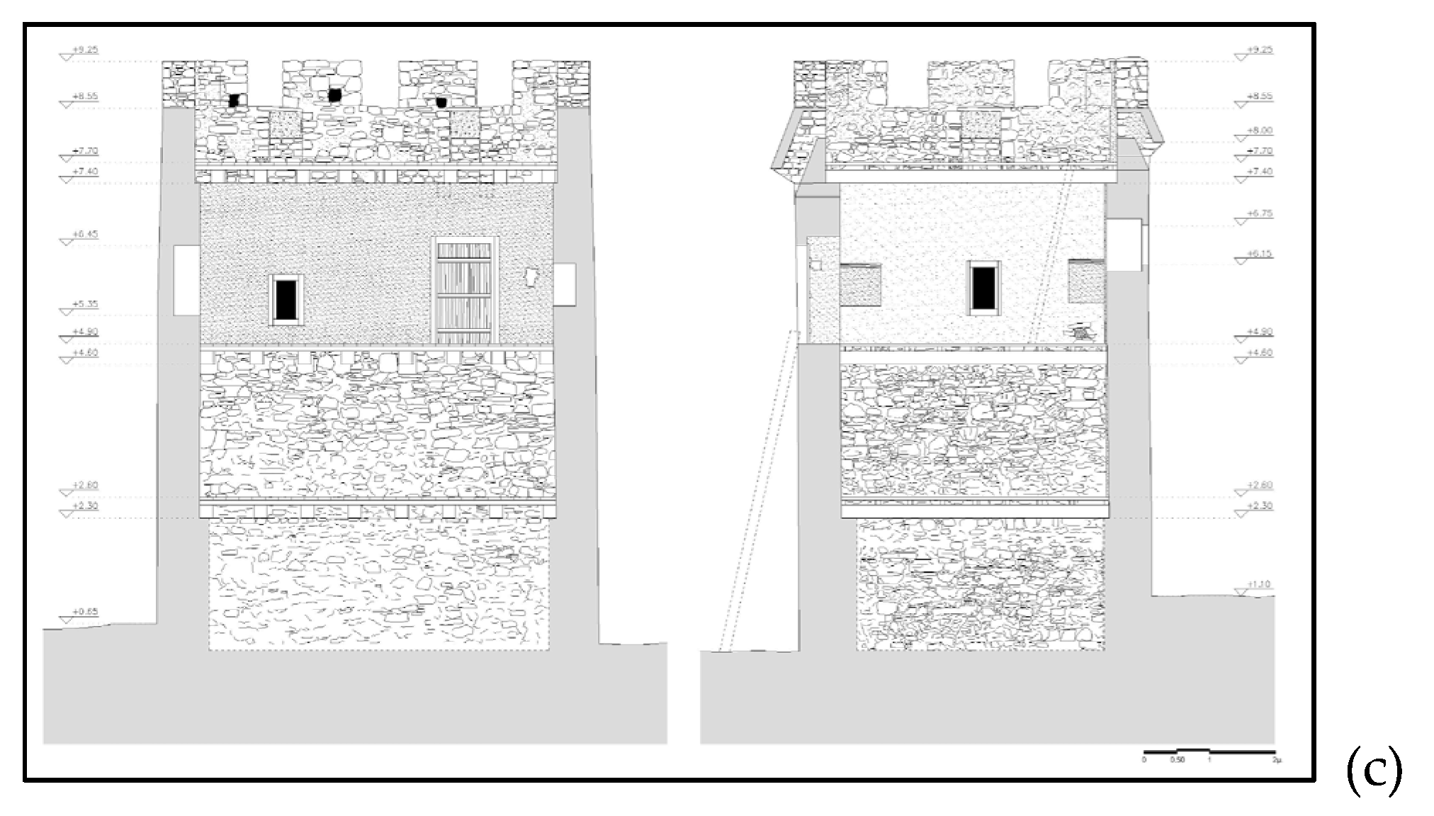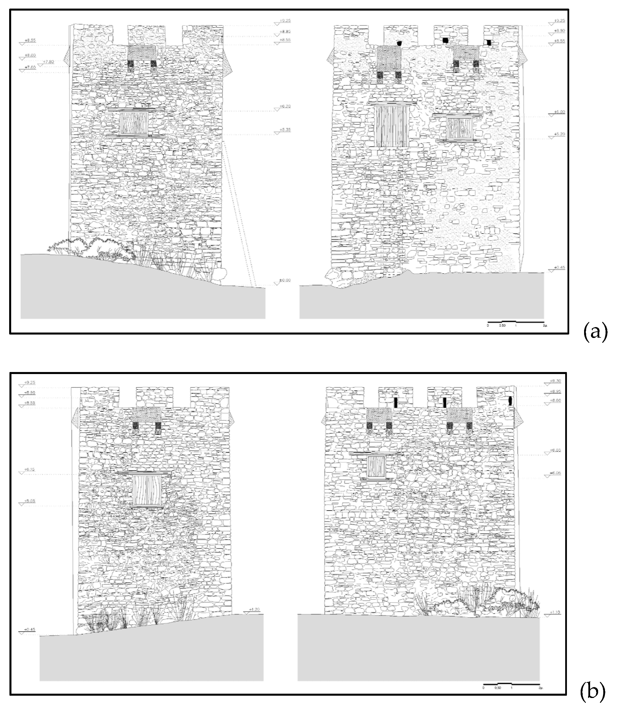 - Restoration of the geometry of the openings, the merlons and the machicolations of the tower