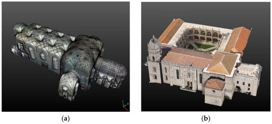 Point-clouds of the Hieronymites Monastery: (a) TLS surveyed interior, (b) Photogrammetric surveyed exterior; roofs obtained from virtual flight.